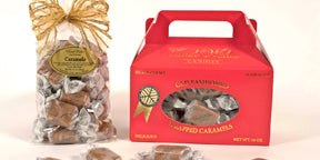 The Georgetown gift box is our most popular gift box, and it is easy to see why. This beautiful gift box contains one half pound each of our award-winning soft and chewy wrapped caramels, Heavenly Angelfood Candy, deluxe mixed nuts and assorted milk and dark chocolates. Makes a great hostess or thank you gift.