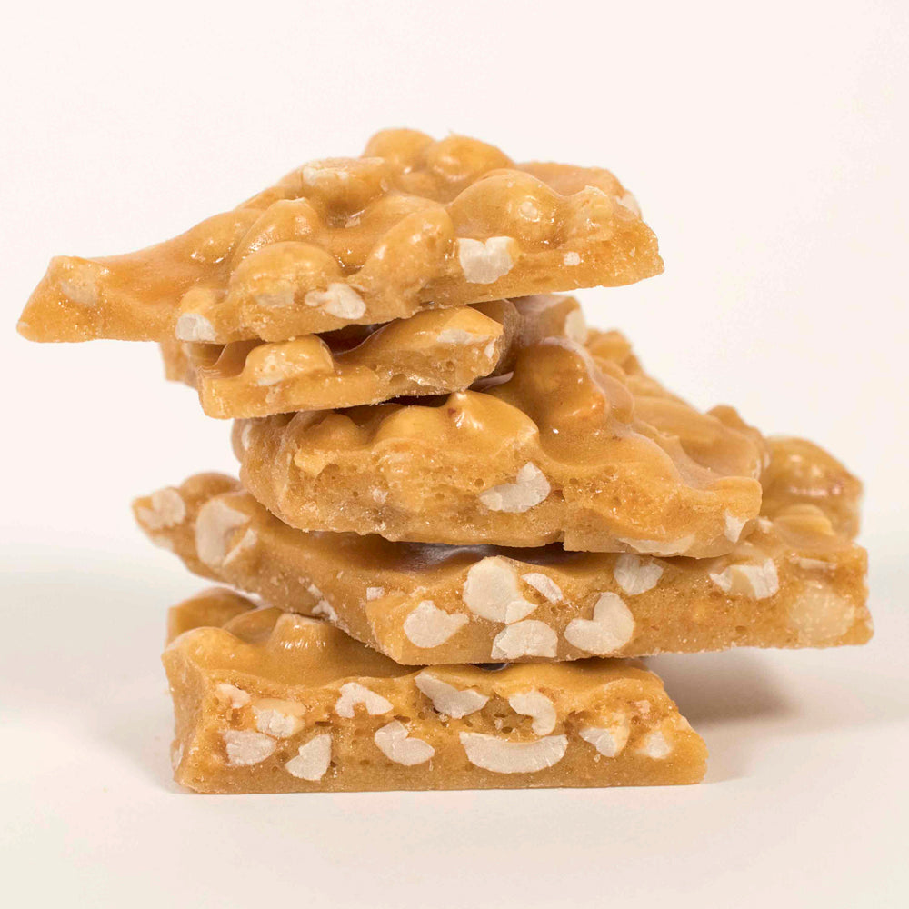 Our traditional light peanut brittle is crafted to create a lighter, honeycomb type texture in the crunchy brittle.  Loaded with peanuts, this is our most popular peanut brittle.