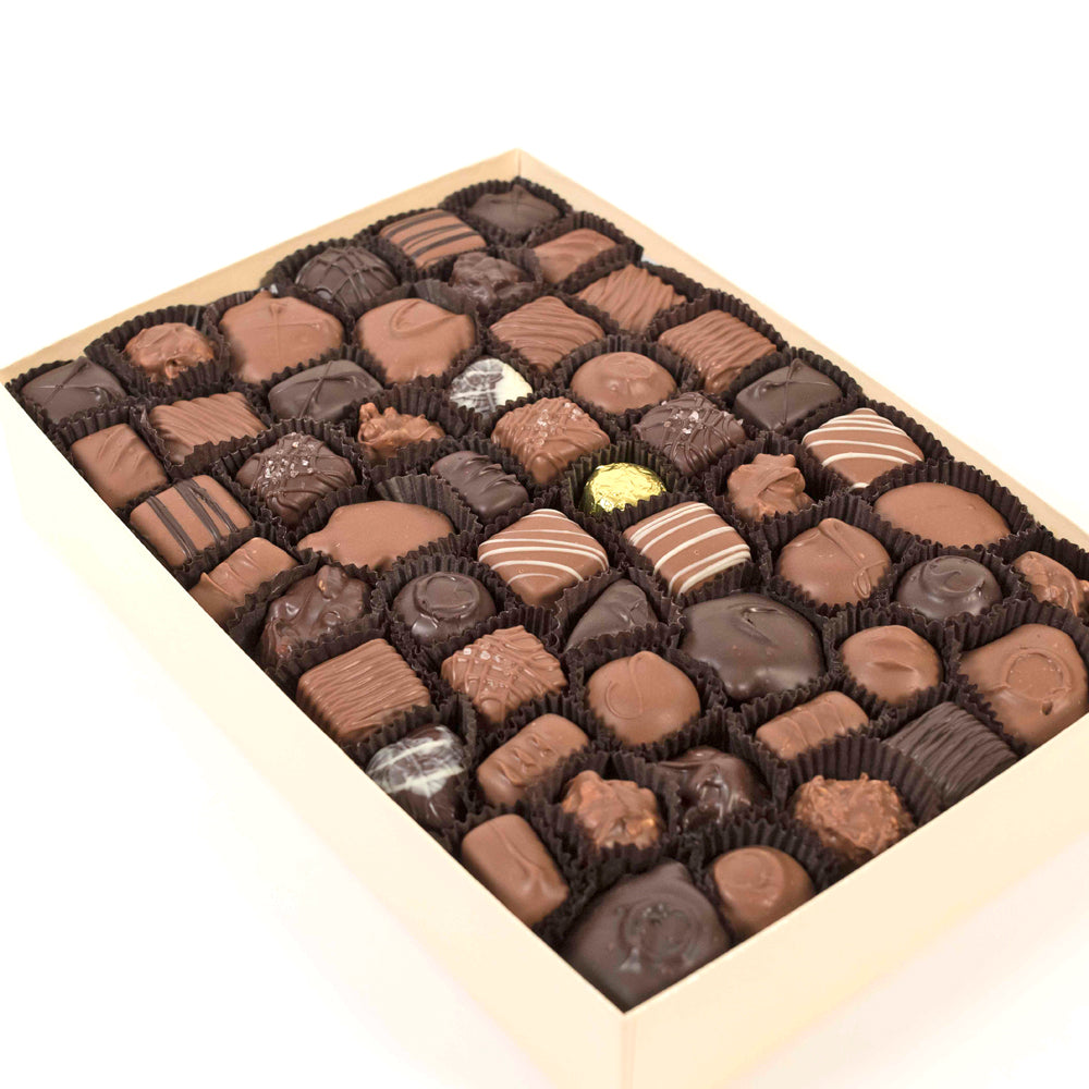 Treat that special person with Vande Walle's fine chocolates, sure to please even the most discriminating chocolate lover.  Each piece of this enticing assortment of milk and dark chocolates is hand selected and packed to insure a beautiful presentation when opened by the recipient. The selection includes our "award-winning" Turtles, Meltaways, English Toffee, Nut Clusters, Buttercreams, Caramels, and more.    Vande Walle's assorted boxed chocolates makes the perfect gift!