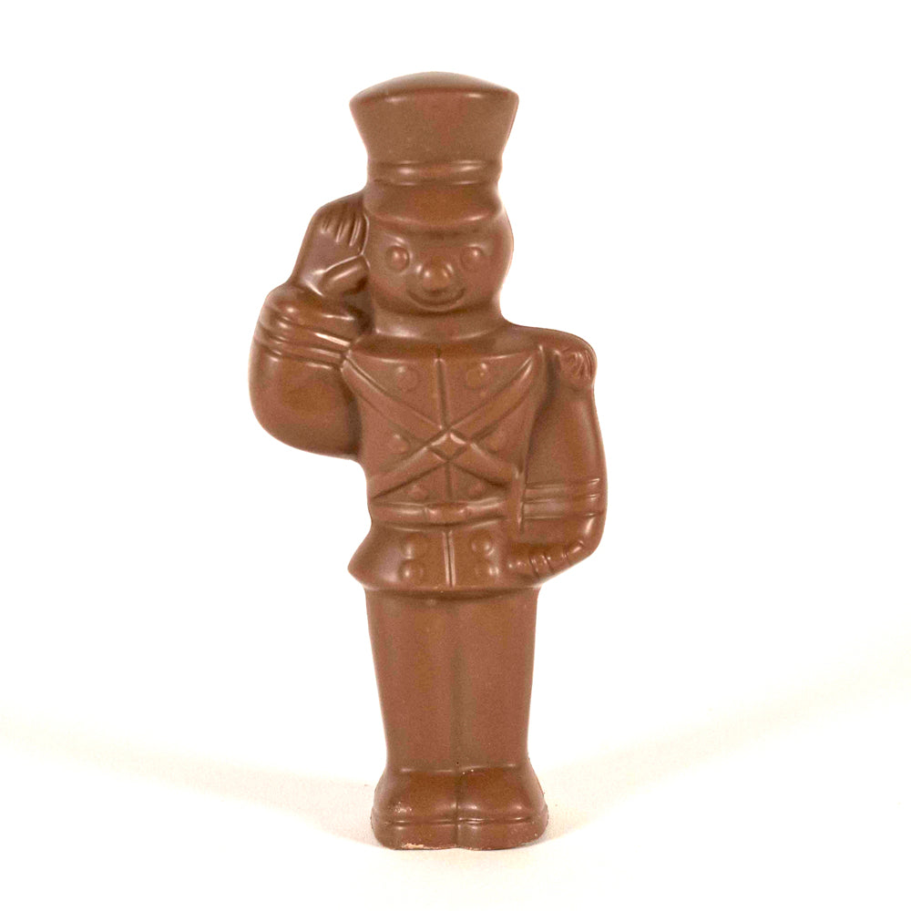 Made with our rich milk chocolate, this 3 oz. solid chocolate toy soldier comes packaged in a clear cello bag with a red satin ribbon bow. Great stocking stuffer!