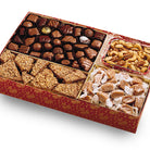 This great gift box comes filled with one pound of our finest selection of Assorted Chocolates, twelve ounces of our delicious Buttercrunch English Toffee, 1/2 pound of our "award-winning" Wrapped Caramels, and 1/2 pound of our finest Deluxe Mixed Nuts.