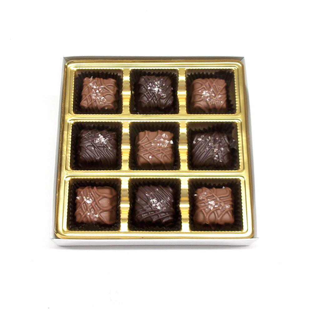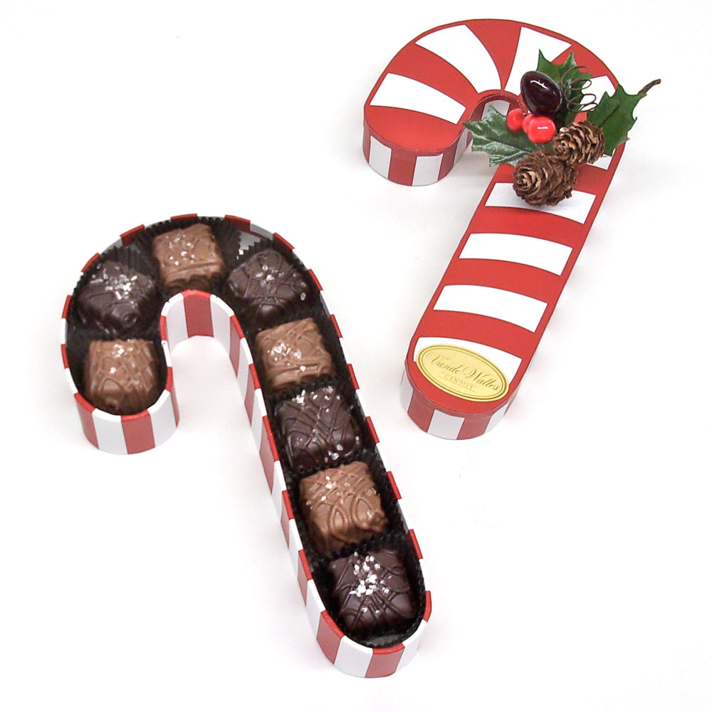 Candy Cane Box Sea Salt Caramels, Milk & Dark Chocolate, 8 pcs.