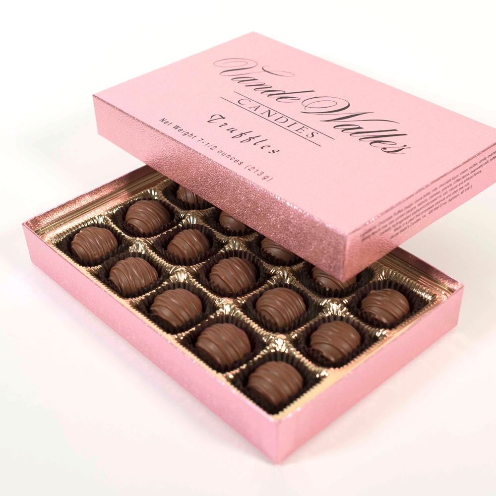 So sinfully rich, the government should issue a warning! We start out with an extremely rich and decadent dark chocolate center, and then add just the right amount of milk chocolate coating to make a truly sensational chocolate truffle. Our customers say "It's one of the best chocolate truffles available". One taste and you'll agree.